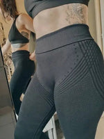 Entdecken Sie die innovative Synergie unserer Leggings, die 3D-Technologie, sanfte Kompression und einen formenden Push-up-Effekt vereint.